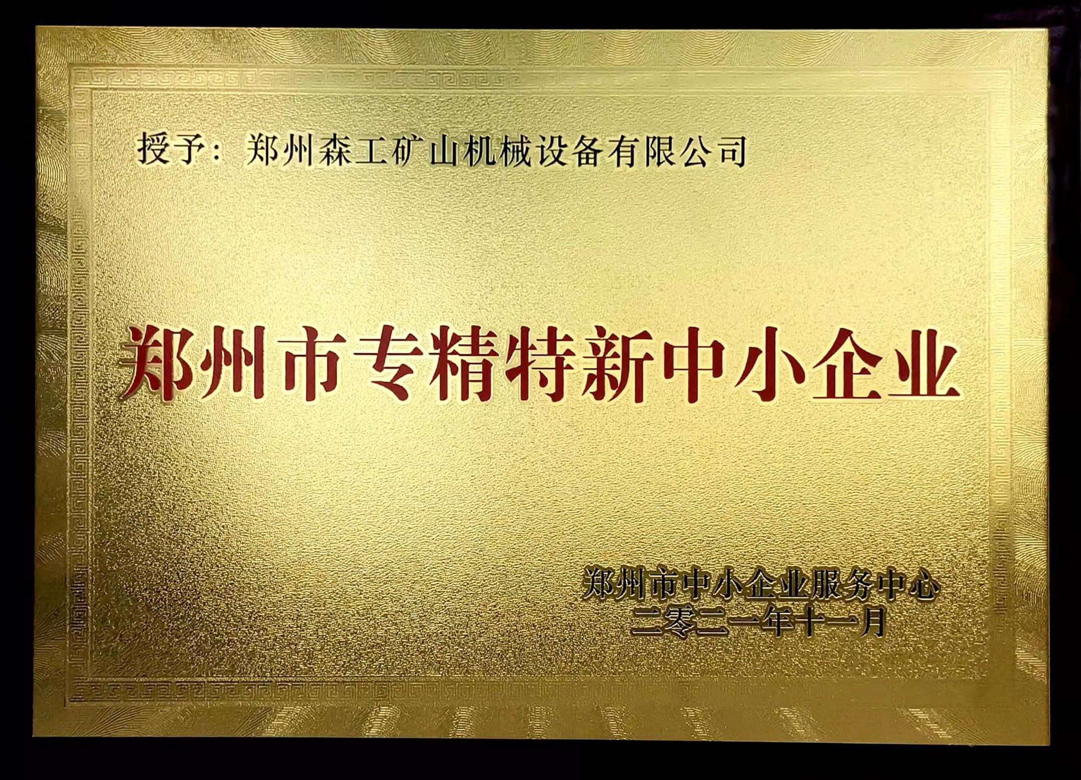 恭喜郑州森工获得郑州市专精特新企业荣誉称号2021-12-29
