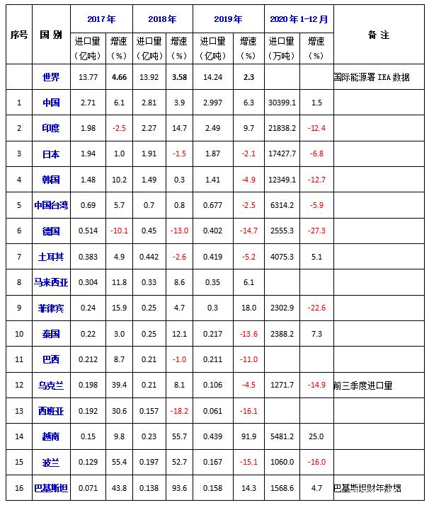 煤炭作为我国的主要能源,需求量一直很大。近些年因为政策影响,新增产能受限,中国转而向外进口煤炭。根据相关机构数据显示,2020年中国煤炭进口量全球第一,为30399.1万吨;印度第二,进口量21838.2万吨;日本第三,进口量17427.7万吨;韩国第四,进口量12349.1万吨。第五是中国台湾,进口量6314.2万吨。
